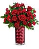 Absolutely stunning! This striking all-red Valentine's Day bouquet is beautifully arranged in a glass keepsake vase with a contemporary geometric design and a lovely pearlescent finish.