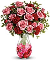 This lovely glass vase adorned with a rose bloom pattern is from Teleflora's exclusive Flowers-in-a-Gift collection. It's perfect for stylish bouquets year-round.